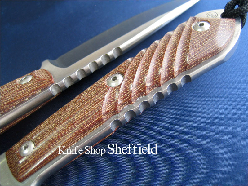 鋼材:CPM S35VNステンレス、HRC:59〜60、ハンドル材:ブラウンキャンバスマイカルタ