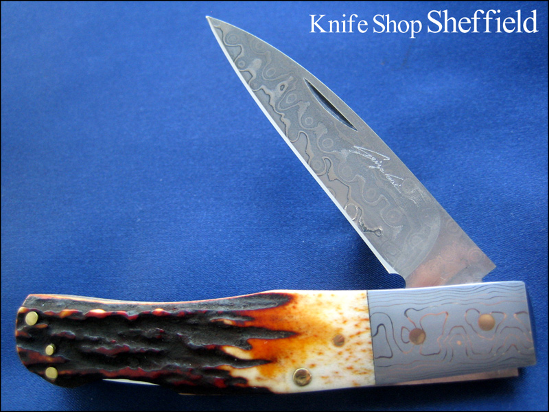 ブレード・ボルスターにダマスカスを用いた高級モデル。