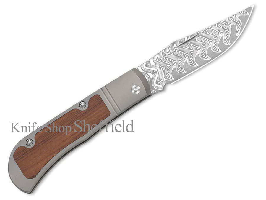 鋼材:ダマスカス鋼、ハンドル材:チタニウム/ウッド、箱付き、新品