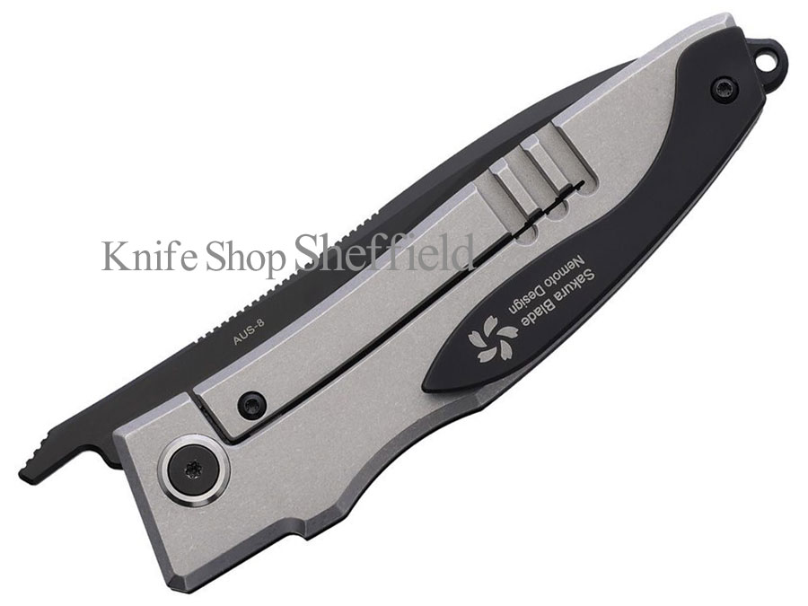 鋭い切れ味のAUS-8ステンレスブレード、ブラックチタンコート