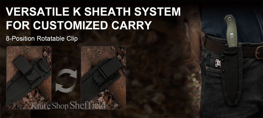 カイデックスシースが付属、回転式クリップ付きで8ポジション選択可能